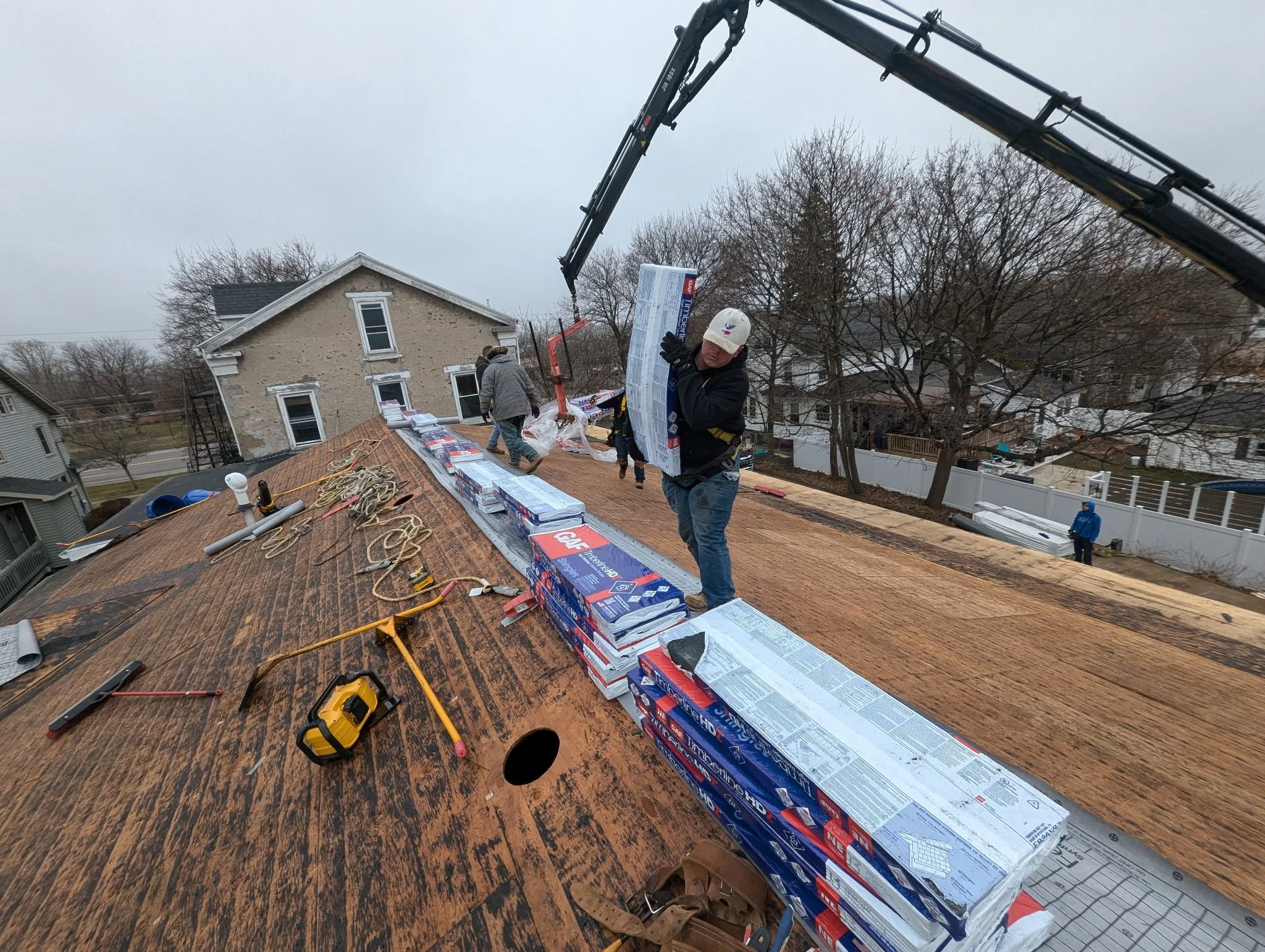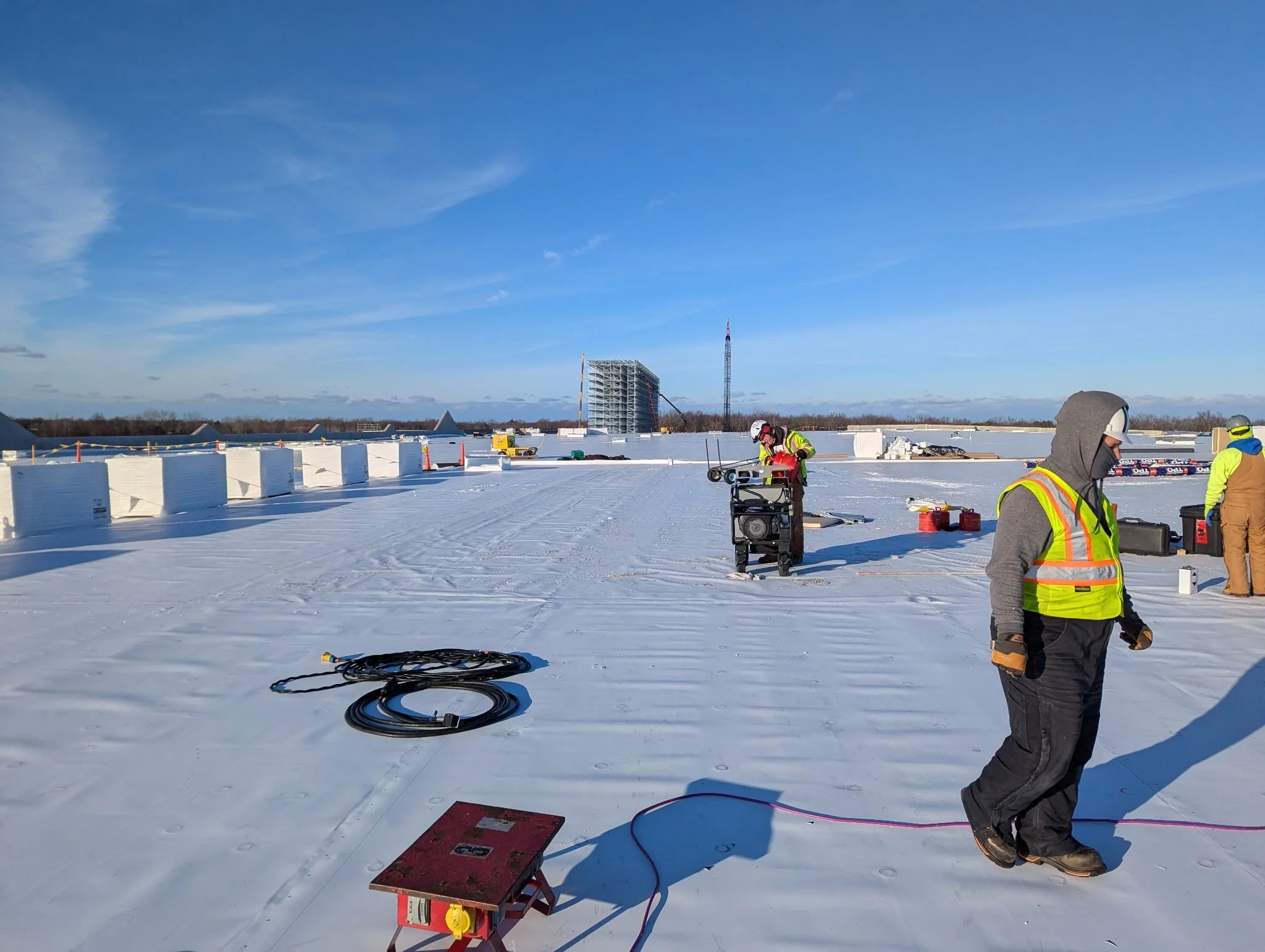 From EPDM, TPO, and PVC flat roofs to standing seam metal and architectural shingles, our team is equipped to handle everything from large commercial applications to detailed residential work. Whether it’s managing drainage on a low-slope system, ensuring proper fastening methods, or custom-fitting metal components on-site, every detail is executed with precision.